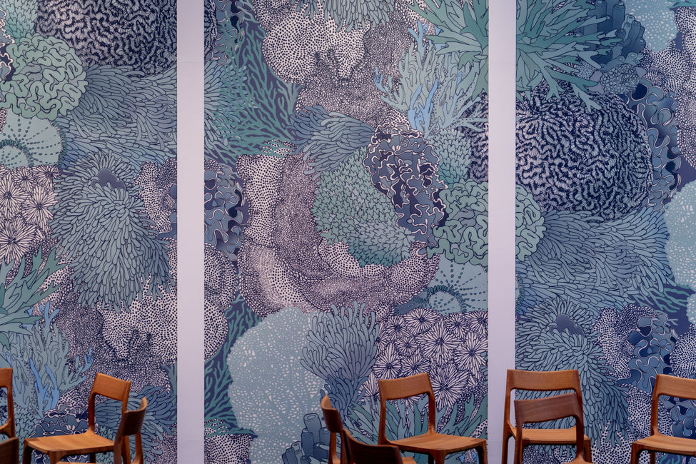 This space is brought to life with the plush Billo Sofa, the bold curves of the Mega Tulip Armchair, and the ambient glow of the Jolly Double Pendant by Kate Stokes. Together, these pieces create a refined yet inviting atmosphere, perfect for intimate gatherings and cultural showcases.