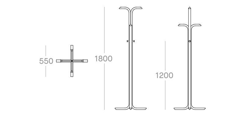 With its gestural tree-like form, the Furl Coat Stand is a piece of functional sculpture. The design originates from a circular solid timber length, or trunk, that is cut into quadrants. Each quadrant is steam bent, spreading at the base like roots, and unfurling at the top to form the boughs of the coat stand. These boughs provide space for coats and hats, while brass pegs accommodate bags.