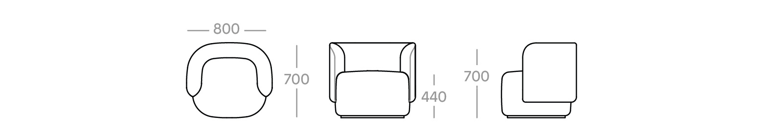 Available in high back version: 800W x 700D x 700H mm