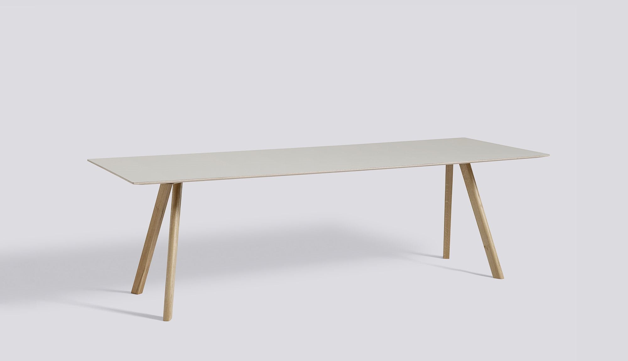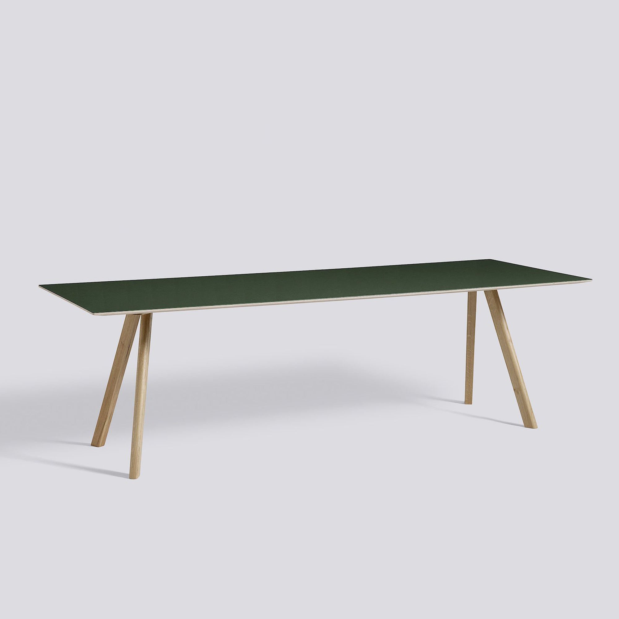 Part of the HAY Copenhague range, the Copenhague Table CPH30 sets itself apart by its coloured linoleum table top. Featuring an untraditional surface on this uncomplicated table challenges expectations and helps tell the story of the personal or formal context that the table enters into. Balanced atop the characteristic angled legs, it creates an elemental, yet strong identity that is consistent with the rest of the collection. Ideal for using as a desk or dining table in a meeting room, office or in a private setting.