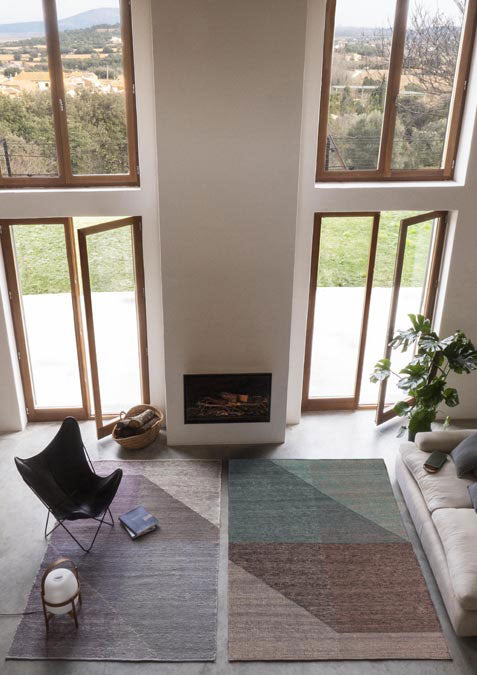 After months of investigation, nanimarquina and Hahn developed a new type of loose Kilim structure which allows mixing the colors of the warp and weft. Normally, warp is not visible in a Kilim. By defining a different density of warp new tonalities surfaced, providing a visual texture where colors intertwine with each other along the carpet. The unique texture creates a dark-and-light effect and great profundity without becoming heavy. Like the layers of air in the atmosphere that reflect light and cast shadow.