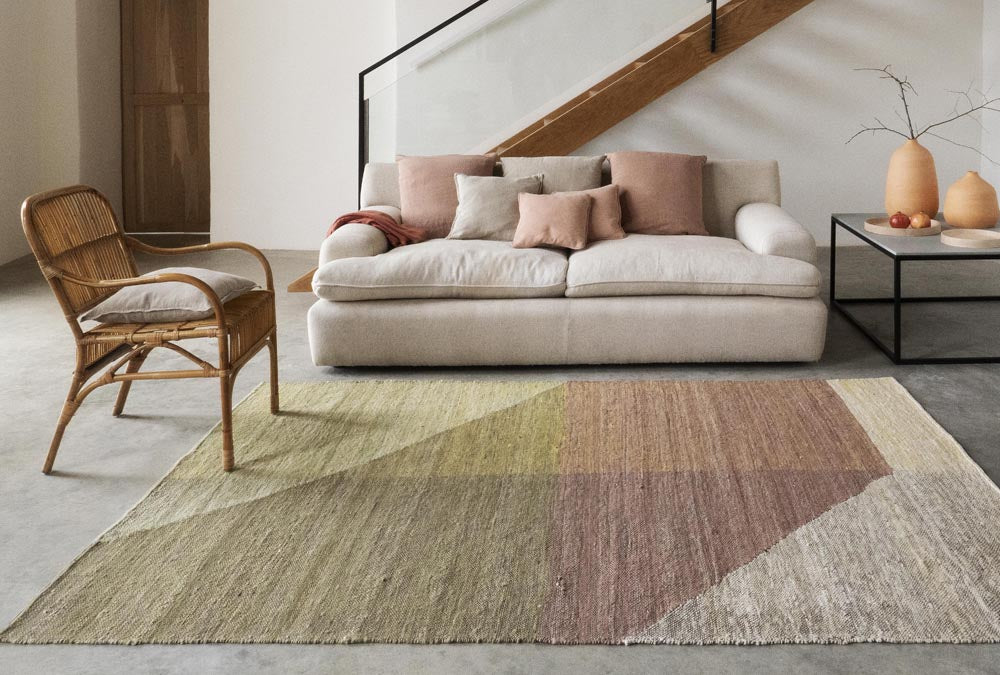 After months of investigation, nanimarquina and Hahn developed a new type of loose Kilim structure which allows mixing the colors of the warp and weft. Normally, warp is not visible in a Kilim. By defining a different density of warp new tonalities surfaced, providing a visual texture where colors intertwine with each other along the carpet. The unique texture creates a dark-and-light effect and great profundity without becoming heavy. Like the layers of air in the atmosphere that reflect light and cast shadow.